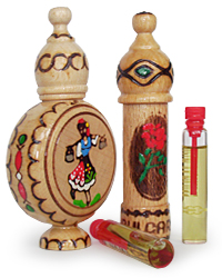 The rose oil vial contains 100% pure and natural Bulgarian Rose Otto (from Bulgarian Rosa Damascena). It has an unlimited expiration term, when stored appropriately. The hand-made and hand-engraved traditional souvenir casing is made of wood and is used to protect the vial with the precious Rose Oil.