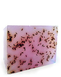 Natural lavender soap. With essential oil of Lavender, Lavender blossom, and fragrance of fresh Lavender. Soothes dry and sensitive skin.